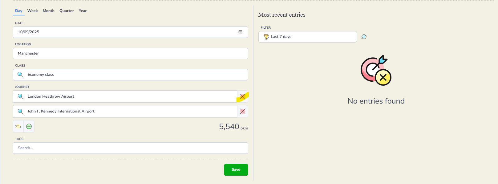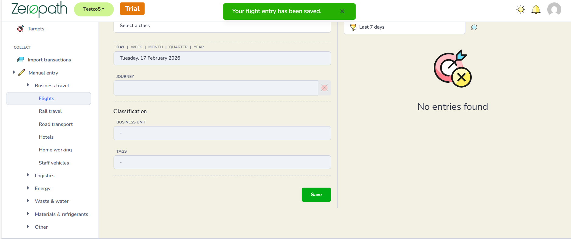 You will then see a green Your flight entry has been saved pop up.