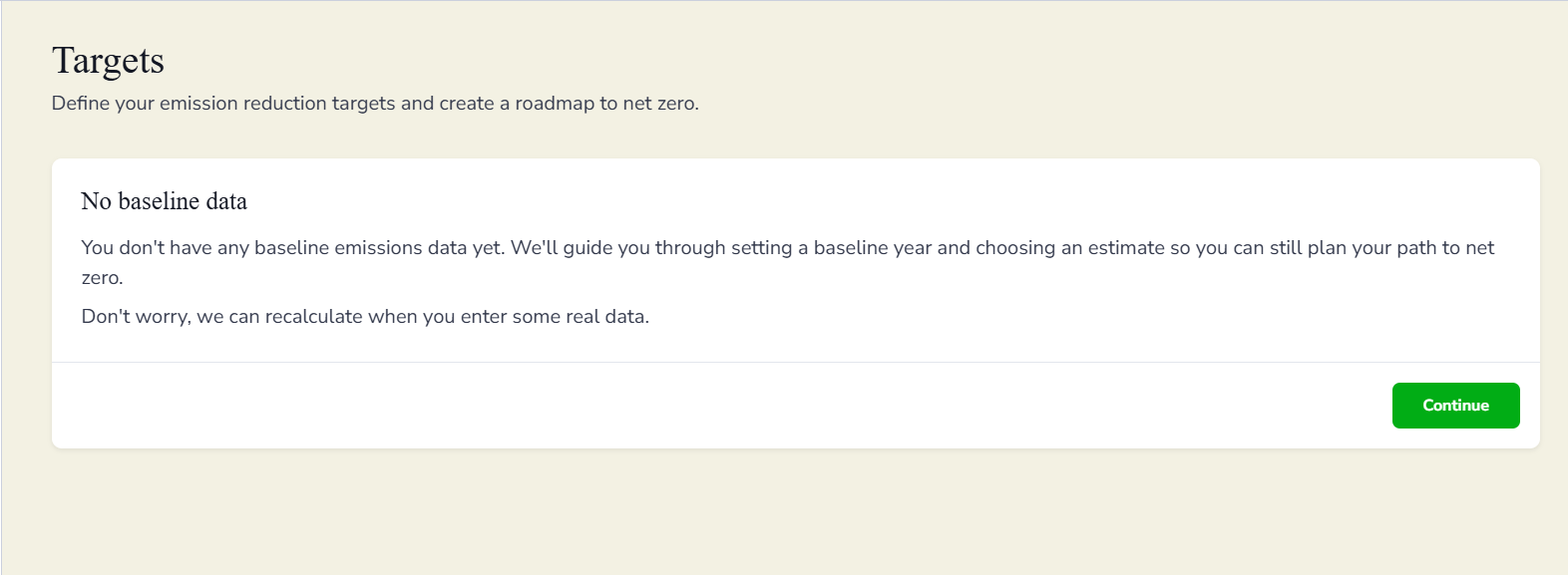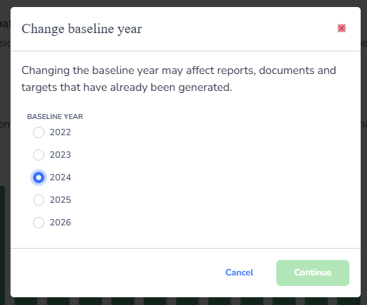 Choose the year you would like to set as your new baseline and click Continue.