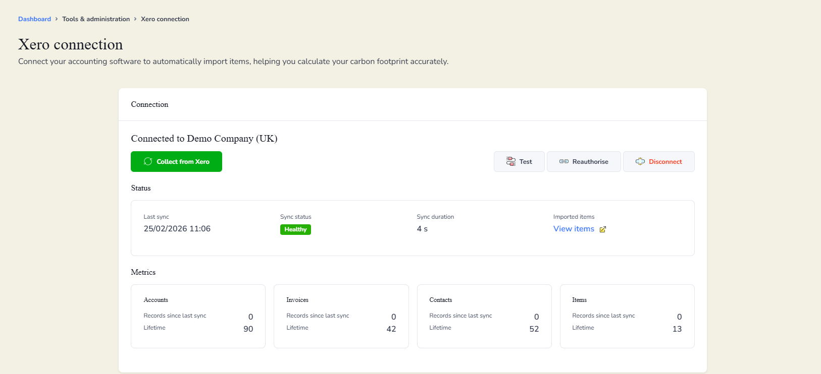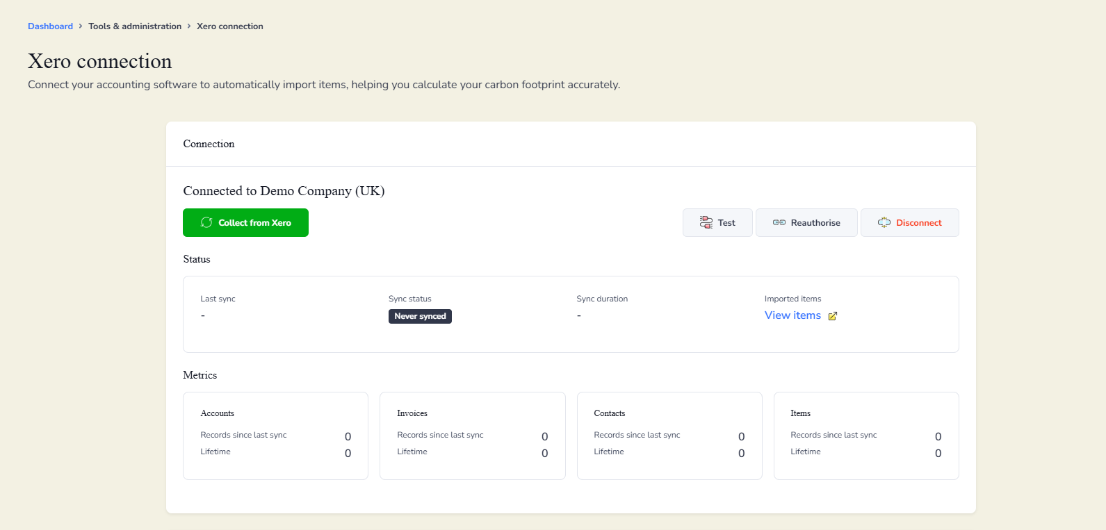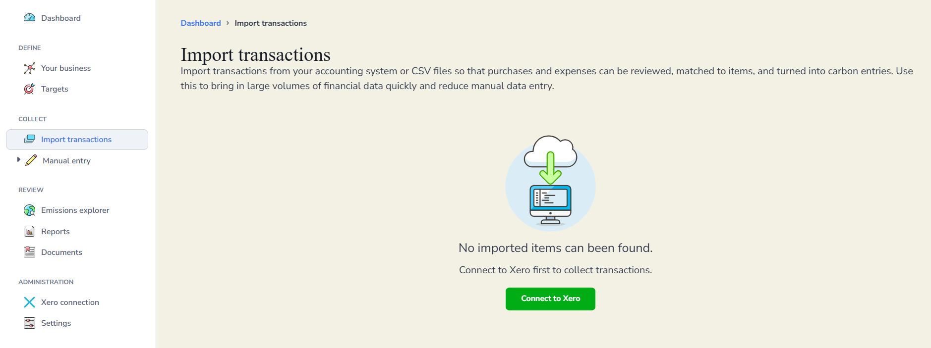 Once connected you can Collect your transactions from Xero by clicking on the green Collect from Xero button.