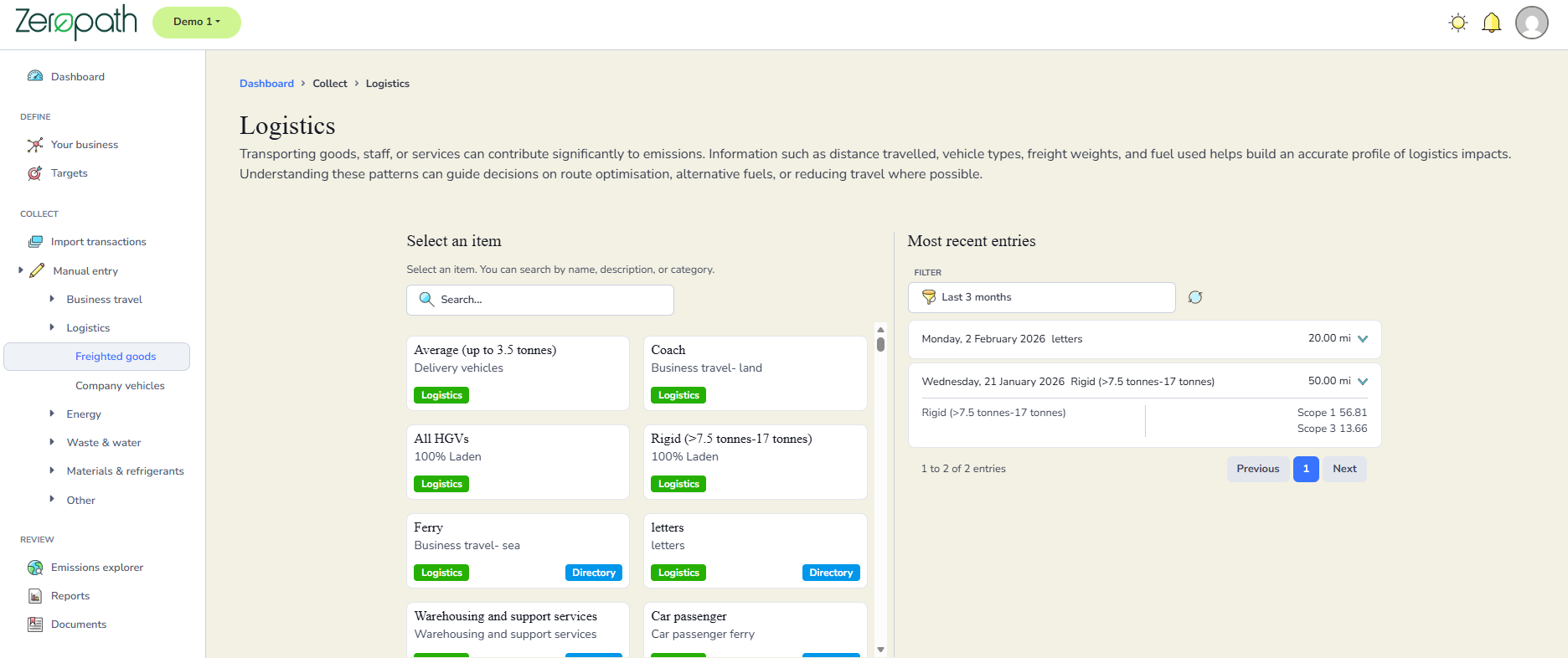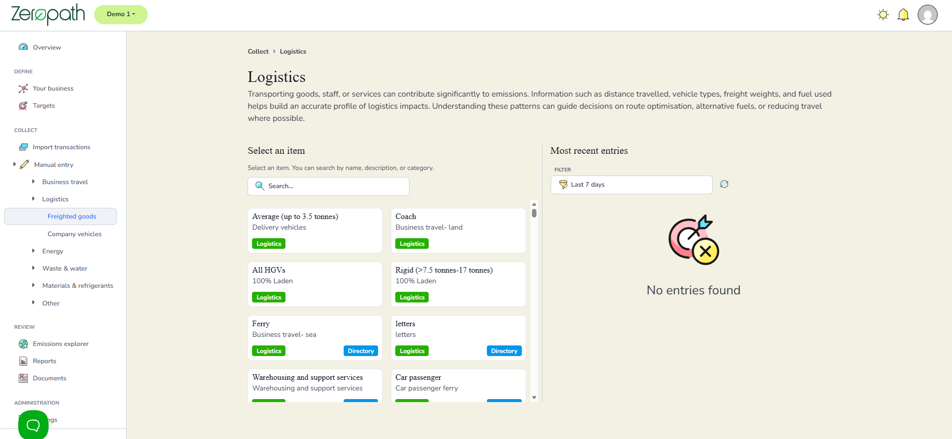 From the left-hand sidebar, click Manual Entry, then select Logistics.
